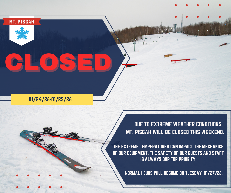 Due to extreme weather conditions, Mt. Pisgah will be closed this weekend (01/24/26–01/25/26).